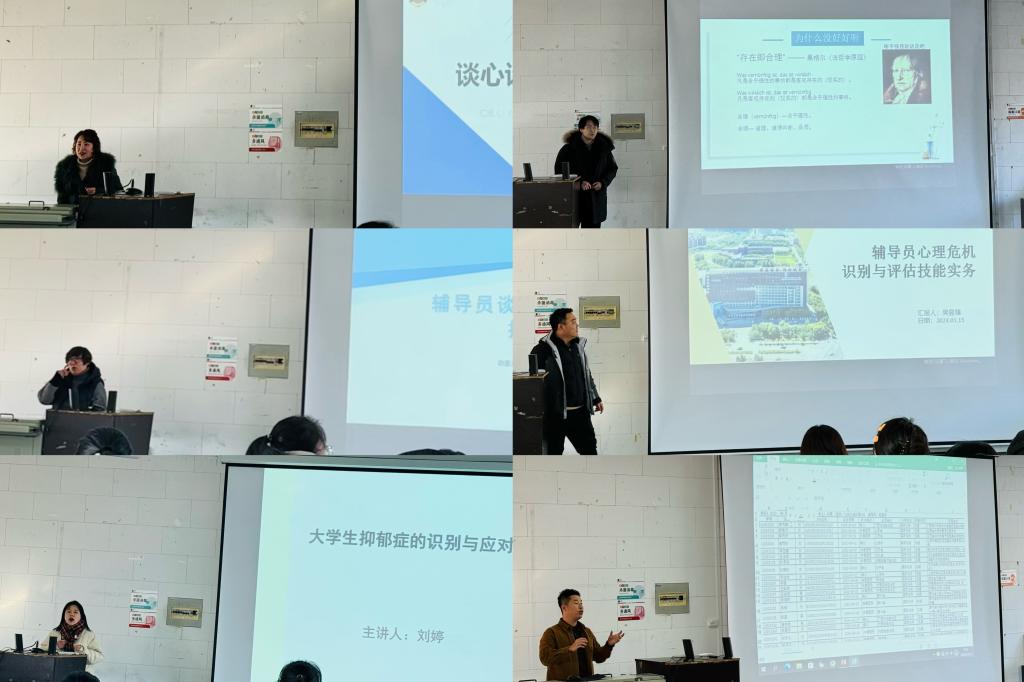 1月9日至13日,学校各学院党总支书记、辅导员、学工办主任、副主任及学工部、校团委全体人员参加了理论知识线下集中学习活动;1月15,动画艺术学院辅导员钱星宇、学工部综合办干事刘语荞、大学生心理健康教育与咨询中心干事吴昱臻、肖健杰四位老师为学校全体辅导员带来了主题为“Office软件使用基础技能培训”、“入伍资助政策解读与高校医保系统培训”、“如何识别心理危机与评估”、“沟通的原理——如何进行非暴力沟通”的经验分享;1月16日,大学生心理健康教育与咨询中心刘婷、虚拟现实与电影技术学院分团委书记陈雪娇、动画艺术学院辅导员都业瀛、动画产业学院辅导员吕品分别进行了主题为“大学生抑郁症的识别与应对策略”、“谈心谈话技巧场景化应用”、“用‘心’育人,防‘危’杜渐共同成长”、“辅导员谈心谈话实务技能”的经验分享;1月17日,学工部常务副部长刘伟斌、综合办副主任董欣、思政办副主任常大地、校团委综合办副主任祝佳辰、设计与产品学院辅导员李敏华、文化产业商学院学工办主任张海涛、漫画学院学工办主任刘兆伟、虚拟现实与电影技术学院学工办主任李海龙、民航学院辅导员尚莲姿、游戏学院辅导员王胤皓、电影学院分团委书记刘倩分别进行了主题为“高校教师十项行为准则解读”、“青果系统使用技能培训”、“劳动教育实施方案解读”、“劳动教育理论课程观摩课”、“在‘后进生’中选择并提升学生干部的创新与反思”、“提高解决心理问题能力,帮助当代大学生缓解心理压力”、“学生管理工作案例分析”、“解决学生矛盾案例分析”、“如何开展学生主题教育”的经验分享。